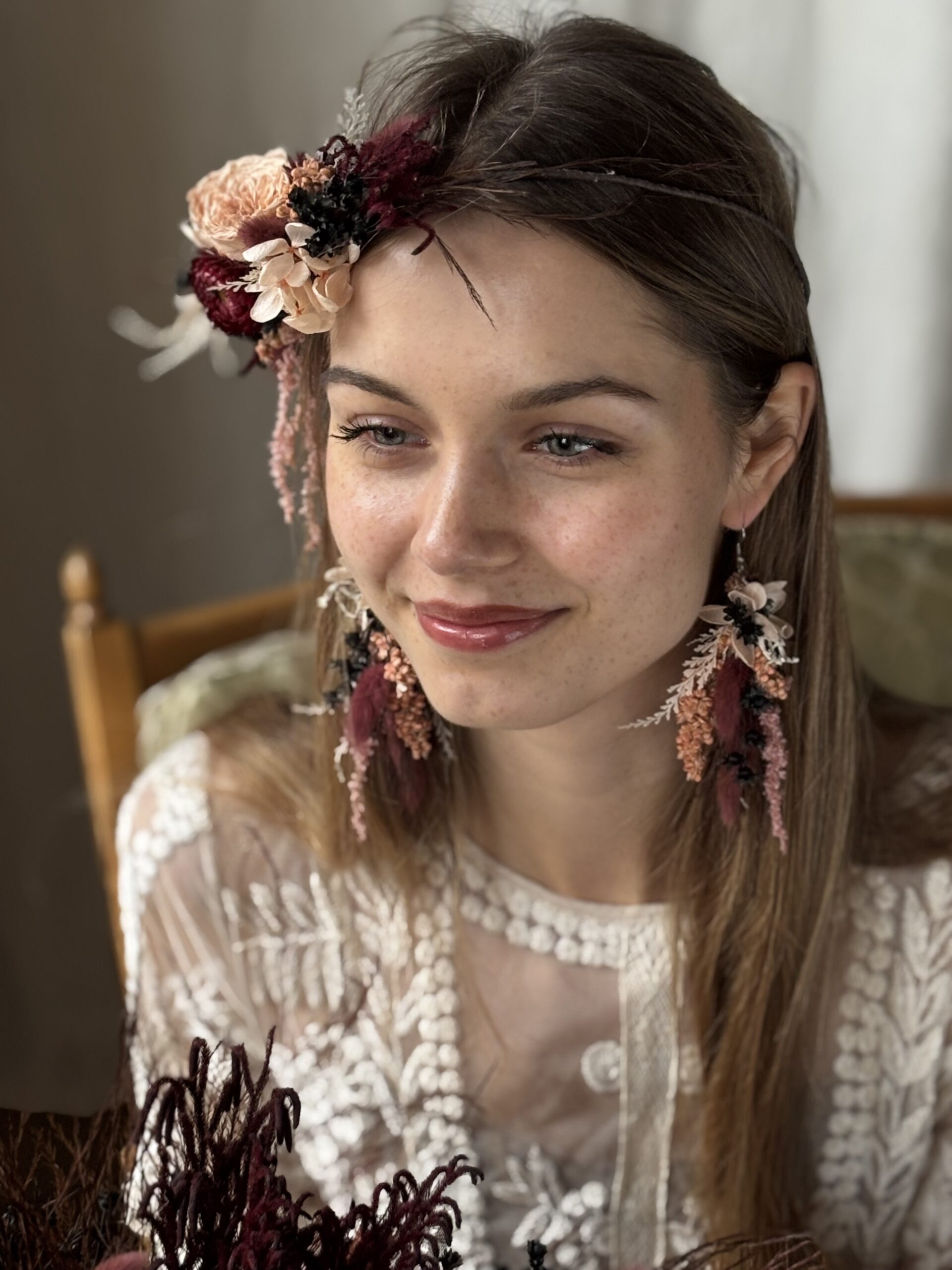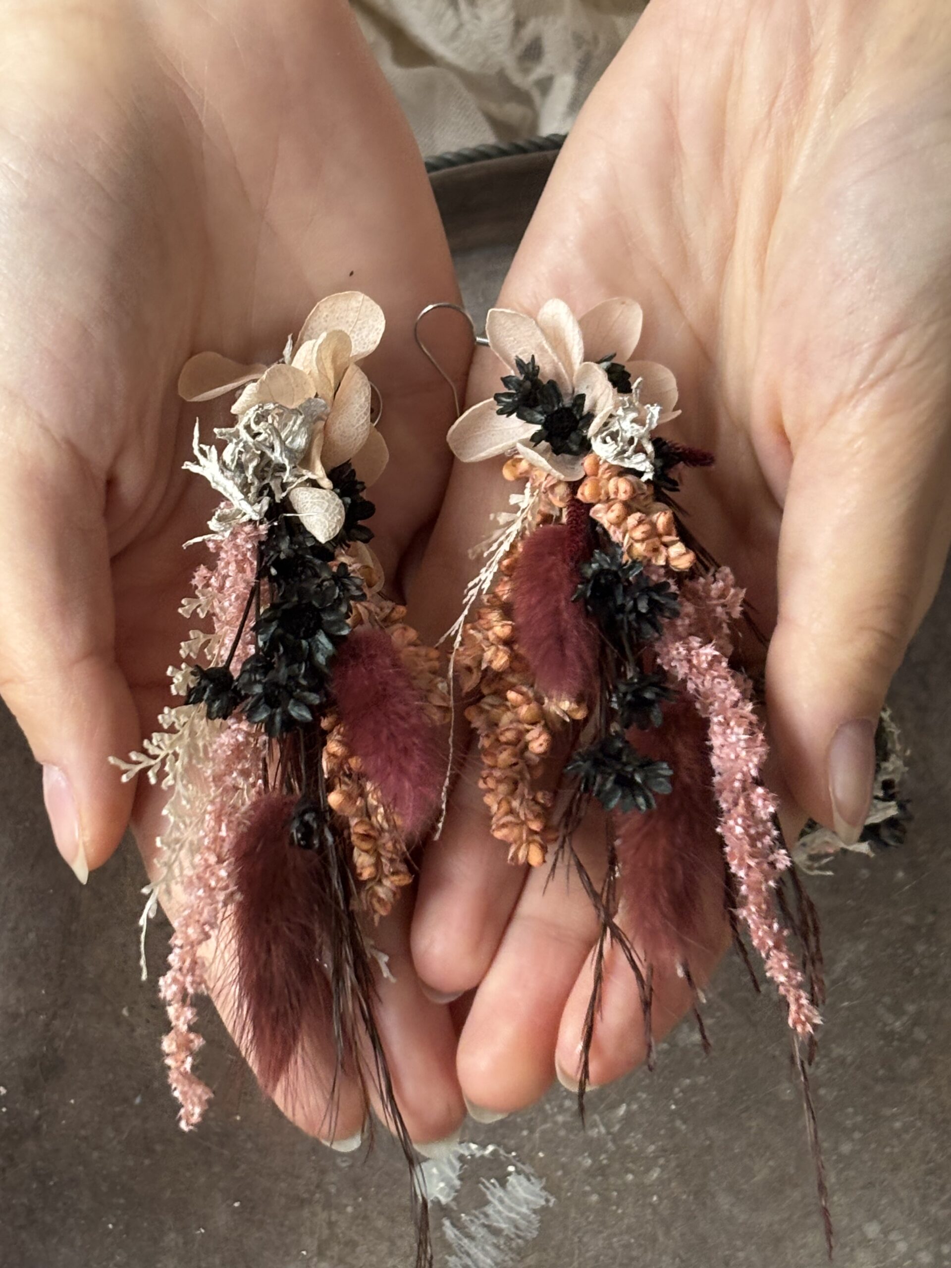 Kolczyki kwiatowe wykonane z suszonych i stabilizowanych roślin – pięknych przez wiele miesięcy a nawet lat.